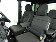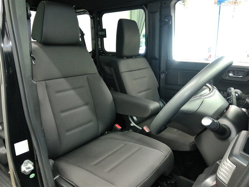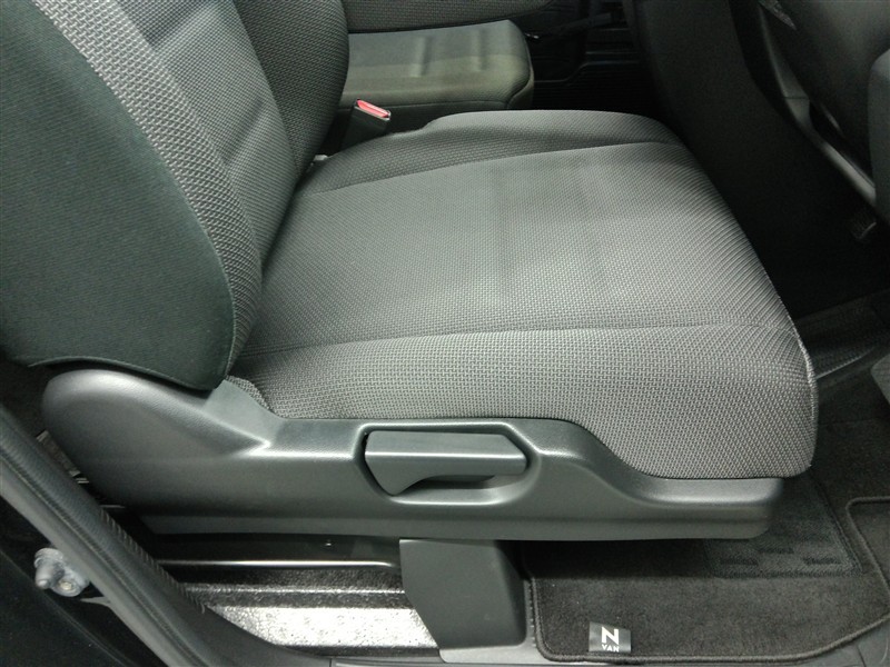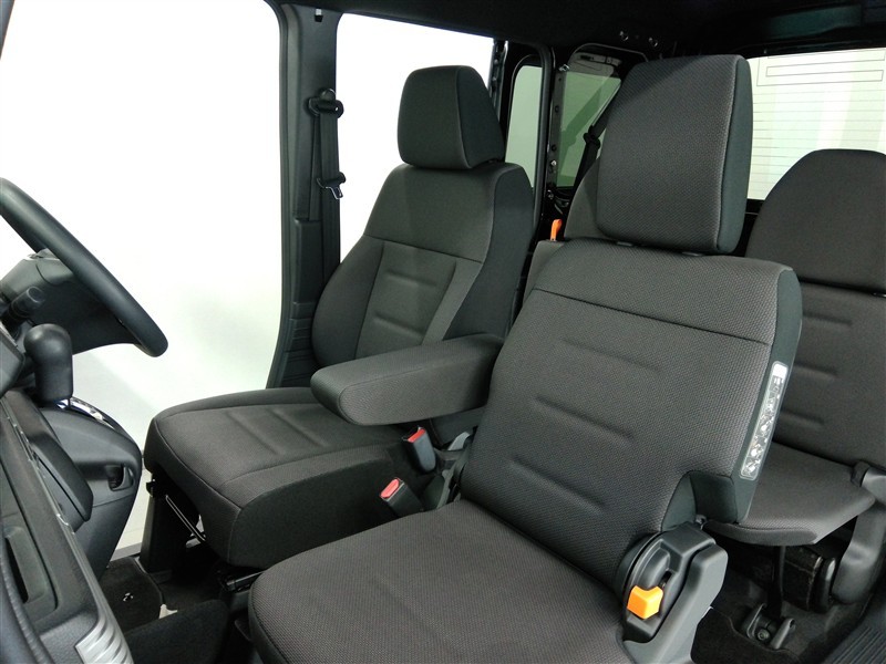 助手席側からの前席ビューです。ファブリックで包み込んだベーシックなシートです。通気性が良くて蒸れにくい上に、保温性も高いので冬場でも冷えを感じにくいです♪
