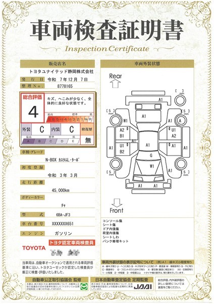 検査員が検査して、車の状態が一目で分かります。是非検査表も確認してみて下さい。
