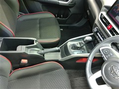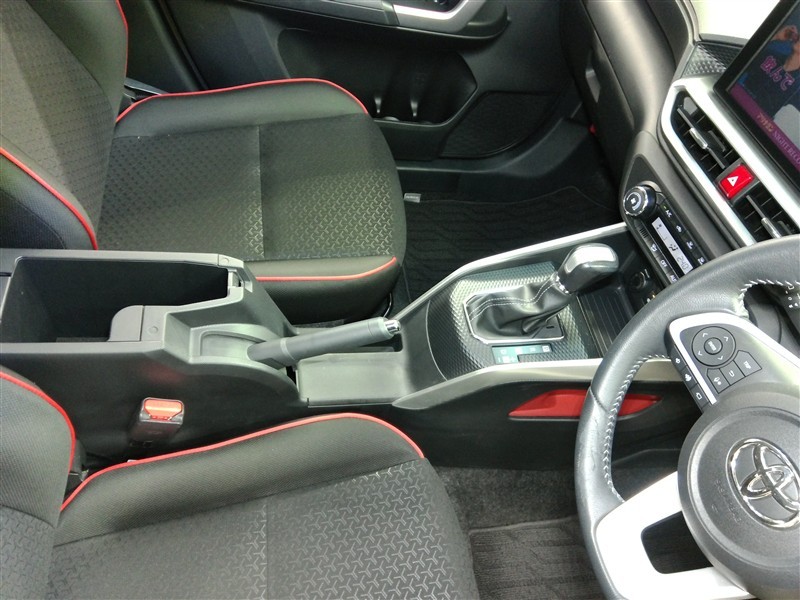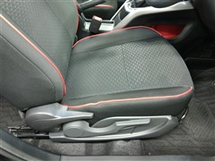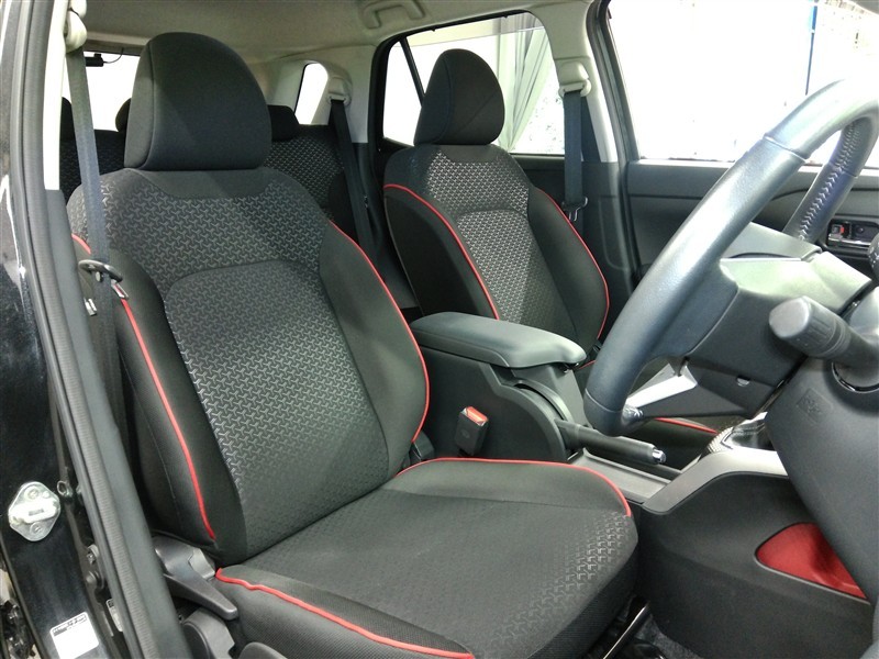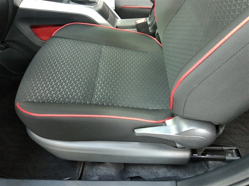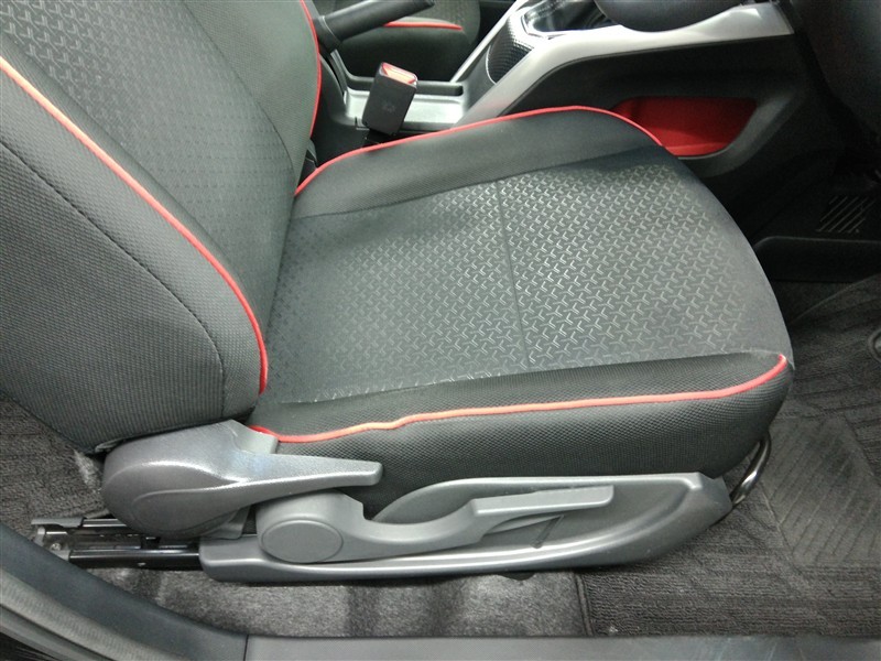 運転席です。座席の上下もできるシートアジャスター付きです。 赤のステッチがカッコイイです。