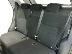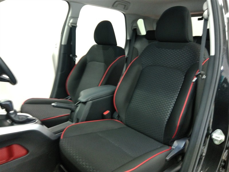 助手席側からの前席ビューです。ファブリックで包み込んだベーシックなシートです。通気性が良くて蒸れにくい上に、保温性も高いので冬場でも冷えを感じにくいです♪