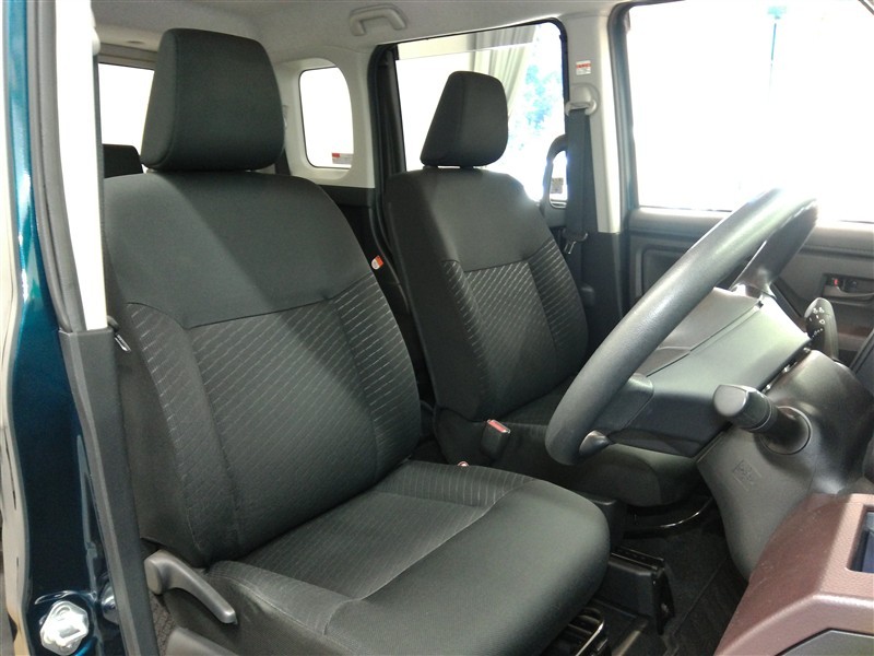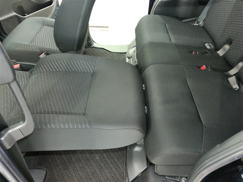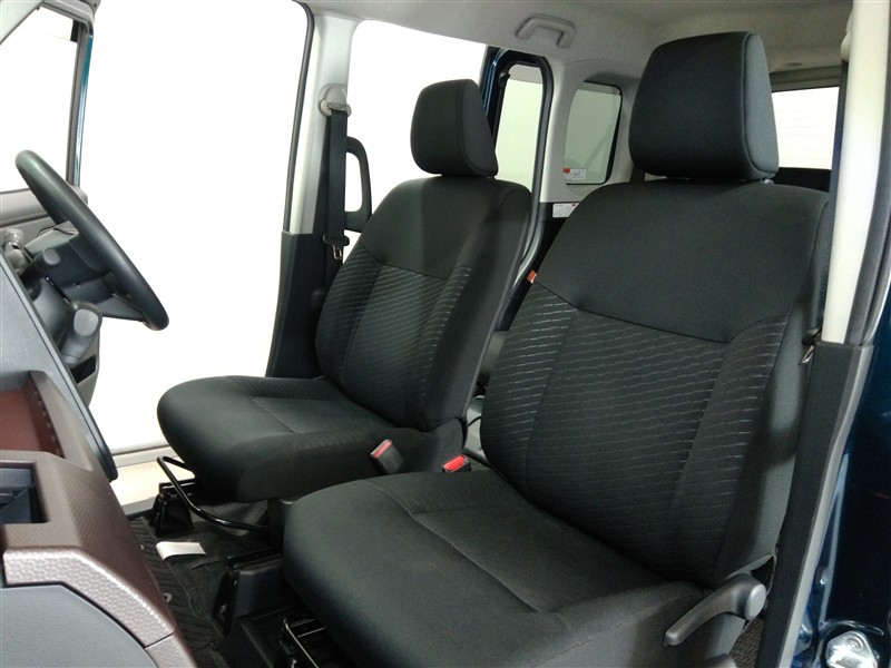 助手席側からの前席ビューです。ファブリックで包み込んだベーシックなシートです。通気性が良くて蒸れにくい上に、保温性も高いので冬場でも冷えを感じにくいです♪