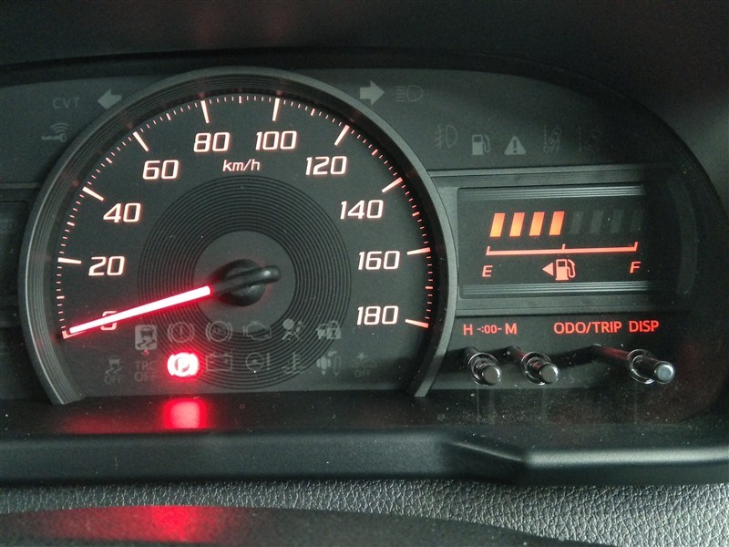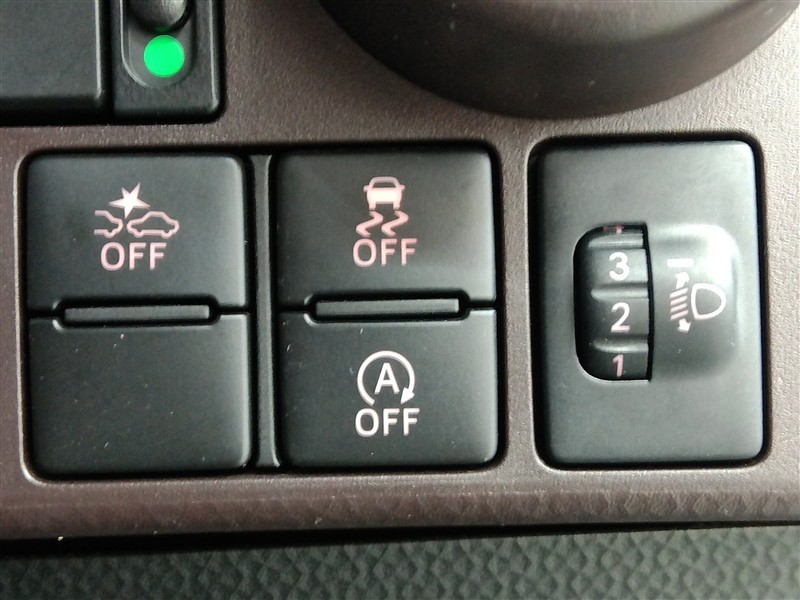 トラクションコントロールとアイドリングストップ機構です。 ヘッドライトの高さ調整のダイヤルもあります。
