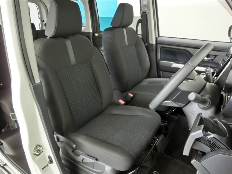 助手席側からの前席ビューです。ファブリックで包み込んだベーシックなシートです。通気性が良くて蒸れにくい上に、保温性も高いので冬場でも冷えを感じにくいです♪