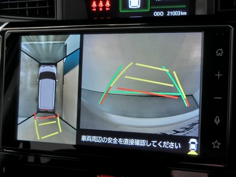 パノラミックビューモニター付きです。車両を上から見たような映像をディスプレイオーディオ画面に表示。運転席からの目視だけでは見にくい、車両周辺の状況をリアルタイムでしっかり確認できます。
