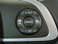 運転席側のステアリングスイッチです。クルーズコントロールの操作ができます。クルーズコントロールは高速道路走行時に燃費向上、運転者の疲労軽減に貢献します。