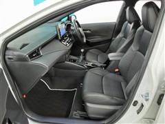 助手席側からの前席ビューです。ファブリックで包み込んだベーシックなシートです。通気性が良くて蒸れにくい上に、保温性も高いので冬場でも冷えを感じにくいです♪