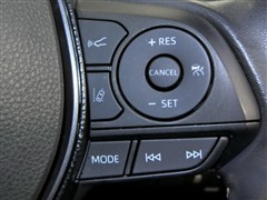 運転席側のステアリングスイッチです。クルーズコントロールの操作とオーディオの操作ができます。クルーズコントロールは高速道路走行時に燃費向上、運転者の疲労軽減に貢献します。