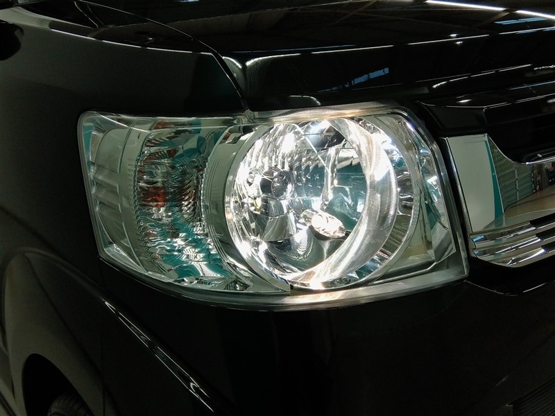 HIDヘッドライトです。ハロゲンヘッドライトと比べると明るく、夜間、雨や雪の日もお車の存在を際立たせますね♪