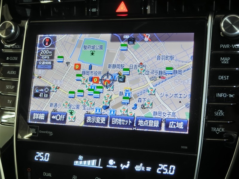 機能も充実した、トヨタの純正ナビ、タッチパネルで操作も簡単です。