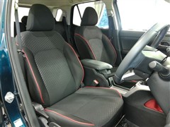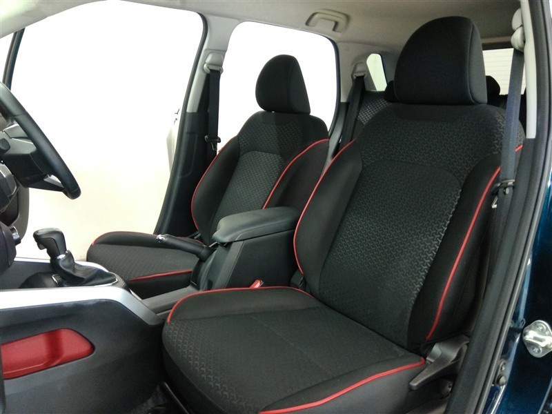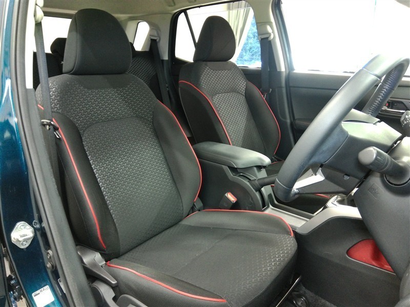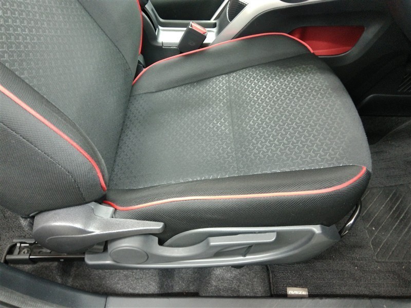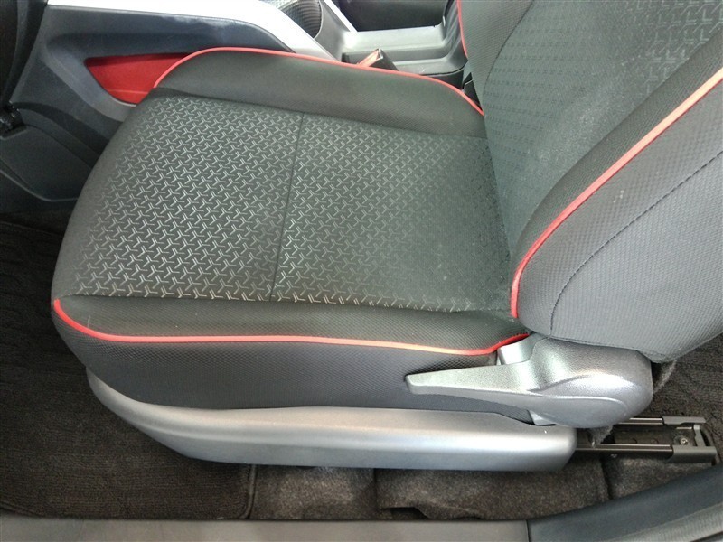 助手席側からの前席ビューです。ファブリックで包み込んだベーシックなシートです。通気性が良くて蒸れにくい上に、保温性も高いので冬場でも冷えを感じにくいです♪