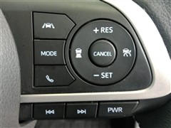 運転席側のステアリングスイッチです。クルーズコントロールの操作とオーディオの操作ができます。クルーズコントロールは高速道路走行時に燃費向上、運転者の疲労軽減に貢献します。