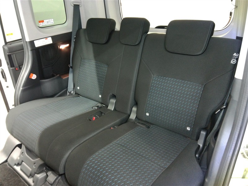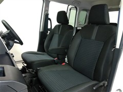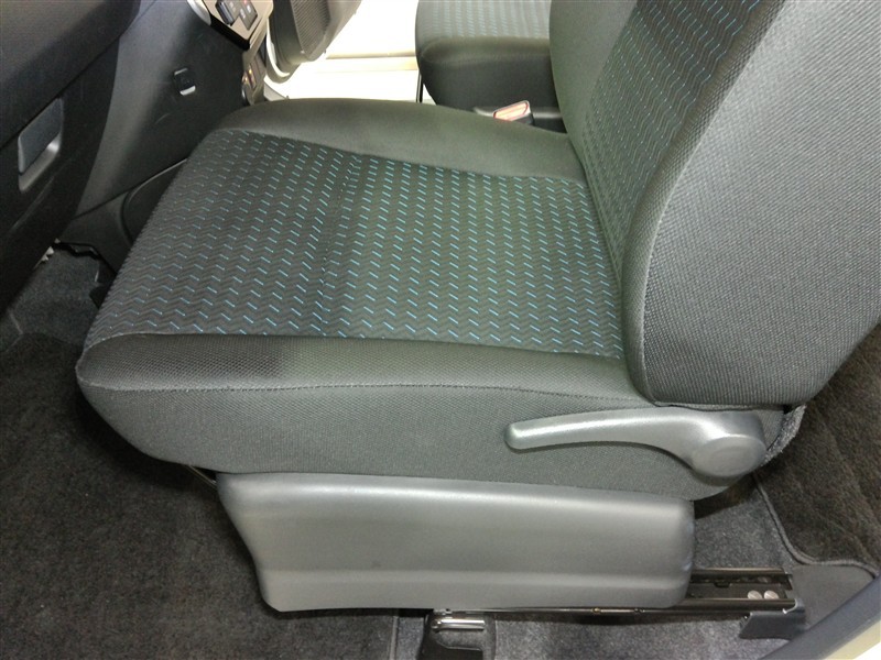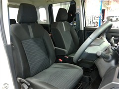 助手席側からの前席ビューです。ファブリックで包み込んだベーシックなシートです。通気性が良くて蒸れにくい上に、保温性も高いので冬場でも冷えを感じにくいです♪