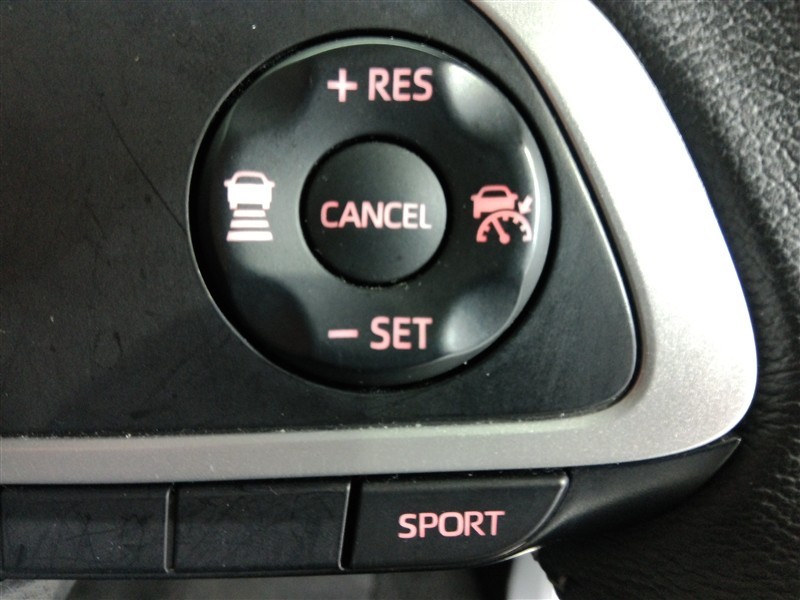 運転席側のステアリングスイッチです。クルーズコントロールの操作ができます。クルーズコントロールは高速道路走行時に燃費向上、運転者の疲労軽減に貢献します。