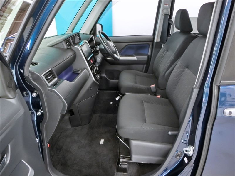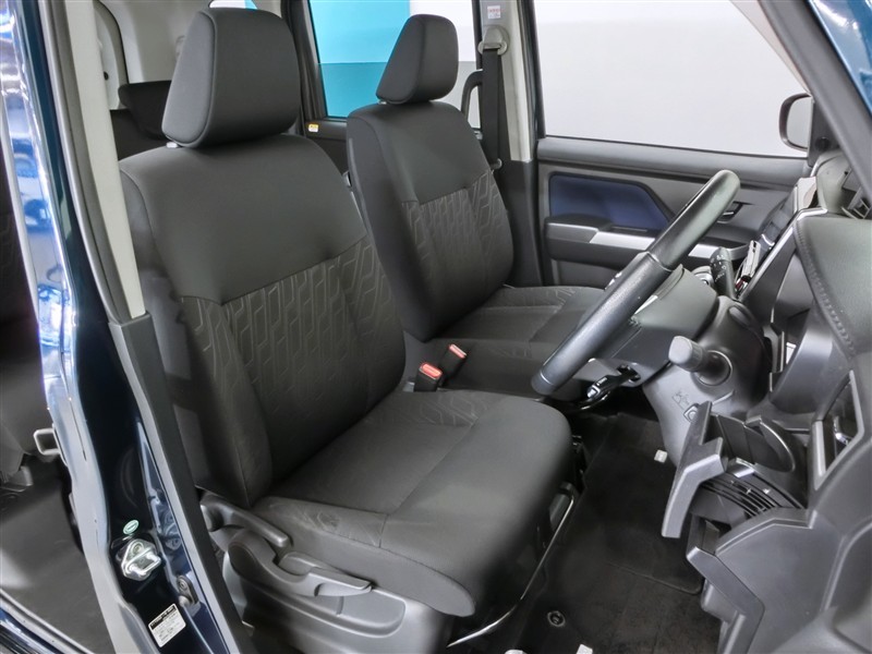助手席側からの前席ビューです。ファブリックで包み込んだベーシックなシートです。通気性が良くて蒸れにくい上に、保温性も高いので冬場でも冷えを感じにくいです♪
