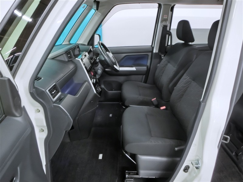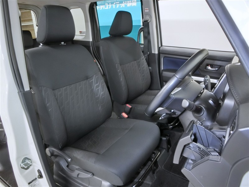 助手席側からの前席ビューです。ファブリックで包み込んだベーシックなシートです。通気性が良くて蒸れにくい上に、保温性も高いので冬場でも冷えを感じにくいです♪