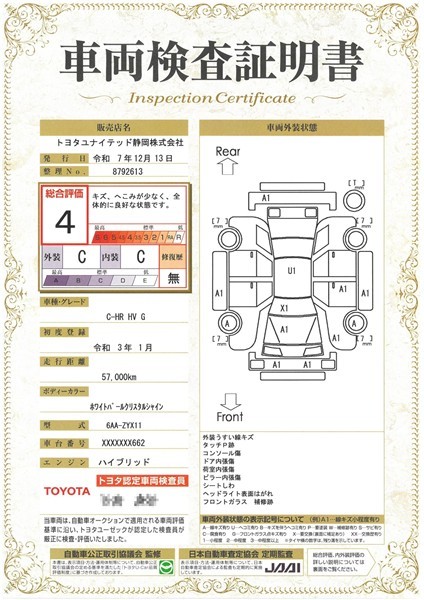 ※ 「修復歴あり」の場合、修復部位の詳細につきましては、販売店へお問い合わせください。