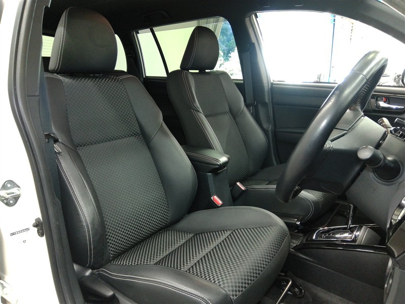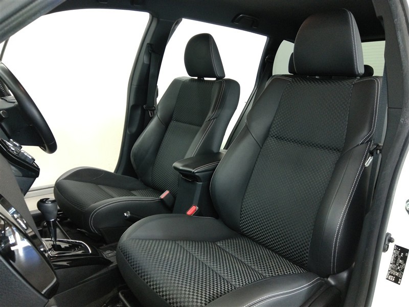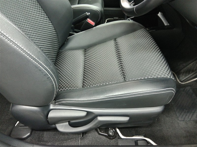 助手席側からの前席ビューです。ファブリックで包み込んだベーシックなシートです。通気性が良くて蒸れにくい上に、保温性も高いので冬場でも冷えを感じにくいです♪