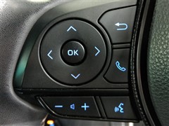 運転席側のステアリングスイッチです。クルーズコントロールの操作とオーディオの操作ができます。クルーズコントロールは高速道路走行時に燃費向上、運転者の疲労軽減に貢献します。