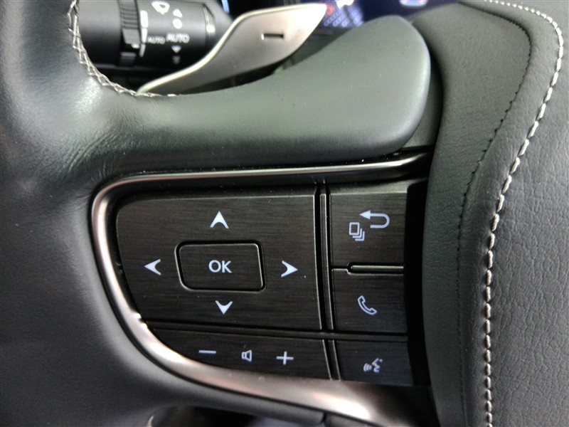 助手席側のステアリングスイッチです。インフォメーションディスプレイの切替とオーディオの音量調節ができます。