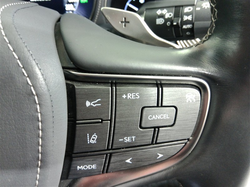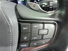 運転席側のステアリングスイッチです。クルーズコントロールの操作とオーディオの操作ができます。クルーズコントロールは高速道路走行時に燃費向上、運転者の疲労軽減に貢献します。