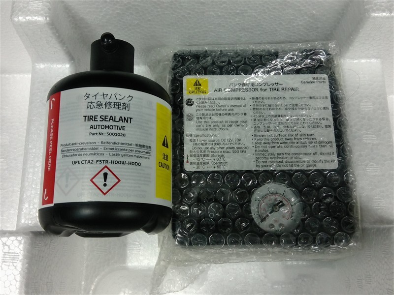 パンクは修理剤が有りますので、充填後電動ポンプで空気を補充します。
