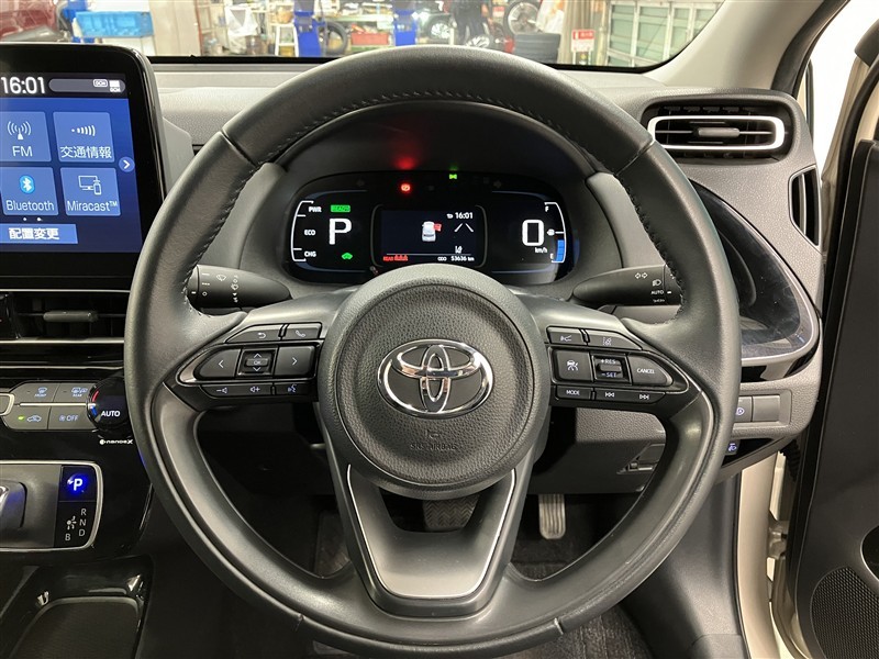 ステアリングには、オーディオコントロール、インフォーメーションコントロールスイッチが付いて手元で操作ができます。