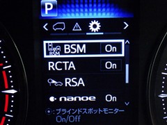 車線変更時などに、ドアミラーでは確認しにくい後側方エリア(ブラインドスポット)に存在する車両をレーダーで検知。警告サインをドアミラー等に表示することで、運転者に注意喚起する機能。