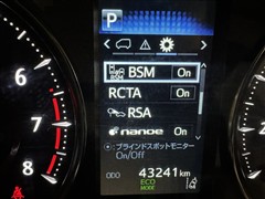 車線変更時などに、ドアミラーでは確認しにくい後側方エリア(ブラインドスポット)に存在する車両をレーダーで検知。警告サインをドアミラー等に表示することで、運転者に注意喚起する機能。