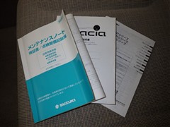 メンテナンスノート、取扱説明書ですね。 車の情報が凝縮されています。 車の整備記録が記載されている大事な物ですよ。
