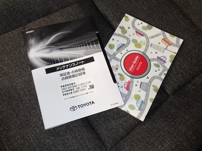メンテナンスノート、取扱説明書ですね。 車の情報が凝縮されています。 車の整備記録が記載されている大事な物ですよ。