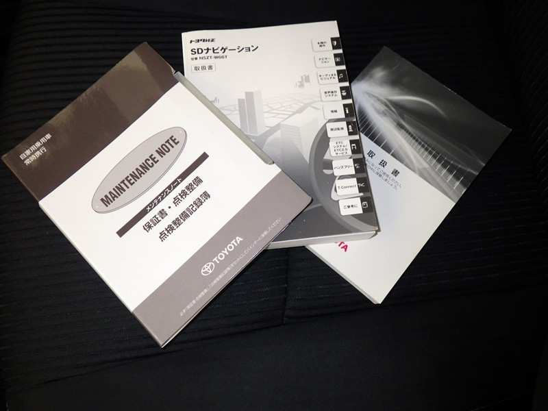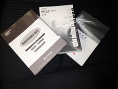 メンテナンスノート、取扱説明書です。 その車の整備記録が事細やかに記録されています。 車が生まれてから今までどのような道を歩んできたのか判るとても重要な物ですよ。