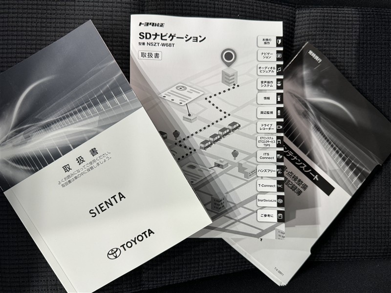 メンテナンスノート、取扱説明書です。 その車の整備記録が事細やかに記録されています。 車が生まれてから今までどのような道を歩んできたのか判るとても重要な物ですよ。