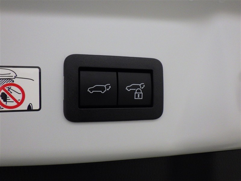 電動式バックドアです。 荷物を持ったままでもボタン一つで自動的に開け閉めできるので便利ですよ。 挟み込み防止機能も付いていますのでお子様の手や荷物を挟み込むのを防いでくれますよ。