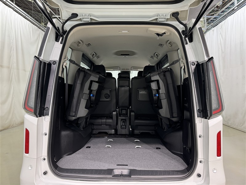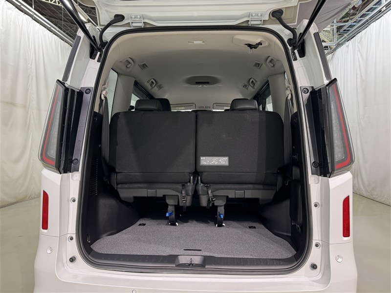 3列目シートは跳ね上げ式で折りたたみ可能です。キャンプ用品など大きな荷物もばっちり収納可能です!