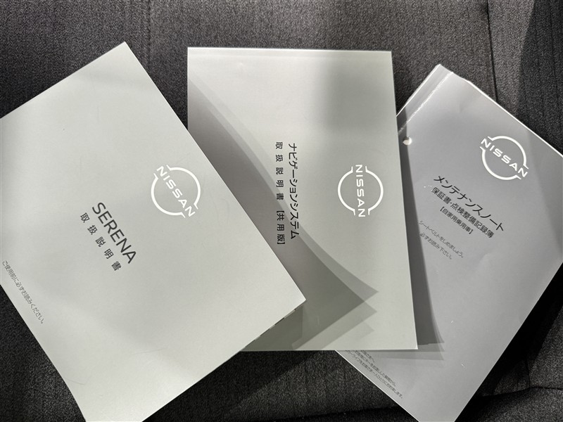 メンテナンスノート、取扱説明書です。 その車の整備記録が事細やかに記録されています。 車が生まれてから今までどのような道を歩んできたのか判るとても重要な物ですよ。