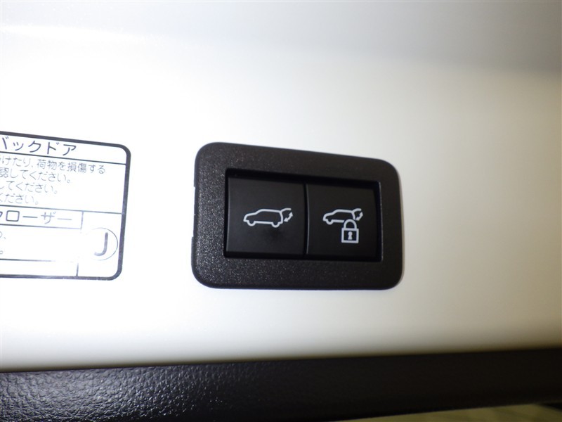 電動式バックドアです。 荷物を持ったままでもボタン一つで自動的に開け閉めできるので便利ですよ。 挟み込み防止機能も付いていますのでお子様の手や荷物を挟み込むのを防いでくれますよ。