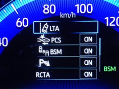 車線変更時などに、ドアミラーでは確認しにくい後側方エリア(ブラインドスポット)に存在する車両をレーダーで検知。警告サインをドアミラー等に表示することで、運転者に注意喚起する機能。