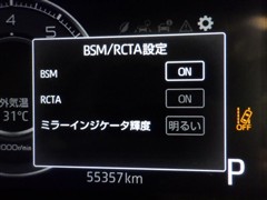 車線変更時などに、ドアミラーでは確認しにくい後側方エリア(ブラインドスポット)に存在する車両をレーダーで検知。警告サインをドアミラー等に表示することで、運転者に注意喚起する機能。