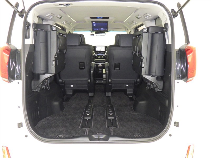 3列目シートは跳ね上げ式で折りたたみ可能です。キャンプ用品など大きな荷物もばっちり収納可能です!