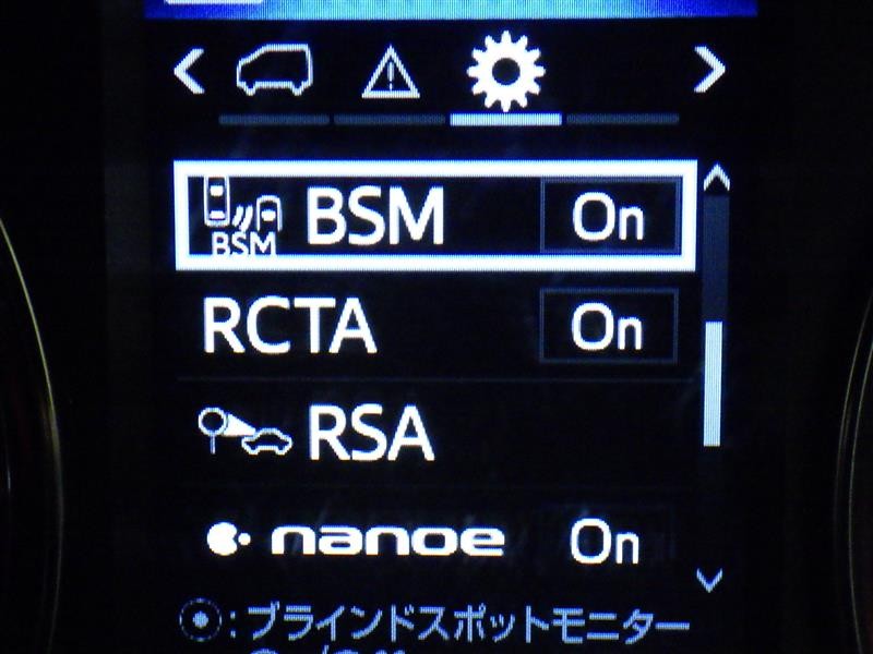 車線変更時などに、ドアミラーでは確認しにくい後側方エリア(ブラインドスポット)に存在する車両をレーダーで検知。警告サインをドアミラー等に表示することで、運転者に注意喚起する機能。