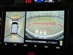 パノラミックビューモニターシステムが付いているので車の上から見た映像が確認できますよ。 一目で車両周辺の情報を確認できますが、直接安全をご確認下さい。