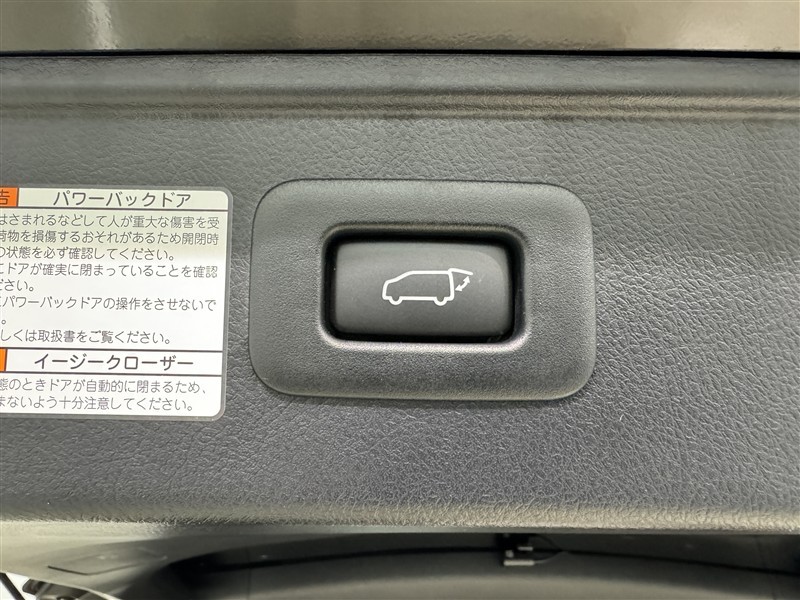 電動式バックドアです。 荷物を持ったままでもボタン一つで自動的に開け閉めできるので便利ですよ。 挟み込み防止機能も付いていますのでお子様の手や荷物を挟み込むのを防いでくれますよ。