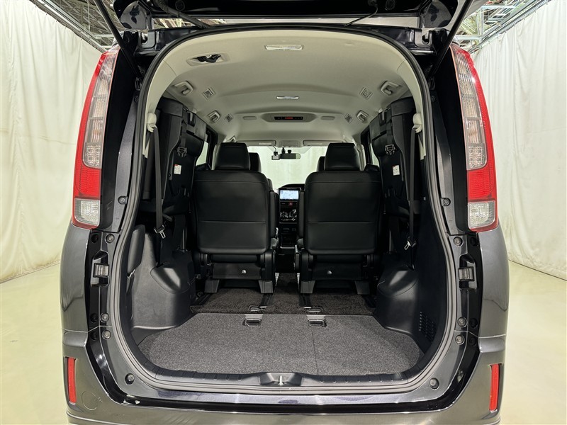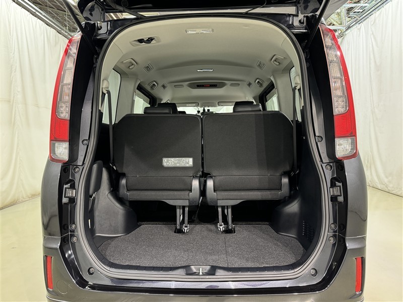 3列目シートは跳ね上げ式で折りたたみ可能です。キャンプ用品など大きな荷物もばっちり収納可能です!