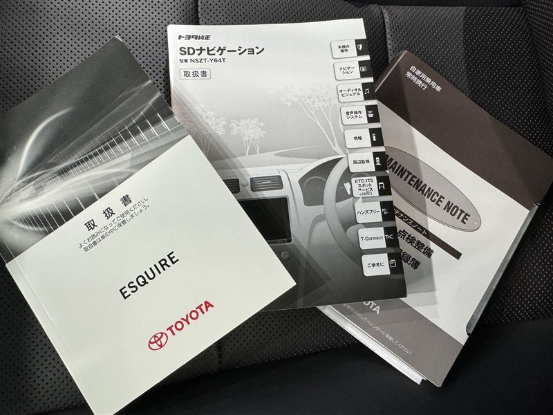 メンテナンスノート、取扱説明書です。 その車の整備記録が事細やかに記録されています。 車が生まれてから今までどのような道を歩んできたのか判るとても重要な物ですよ。