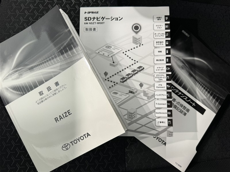 メンテナンスノート、取扱説明書ですね。 車の情報が凝縮されています。 車の整備記録が記載されている大事な物ですよ。