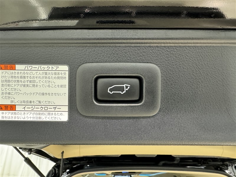 電動式バックドアです。 荷物を持ったままでもボタン一つで自動的に開け閉めできるので便利ですよ。 挟み込み防止機能も付いていますのでお子様の手や荷物を挟み込むのを防いでくれますよ。