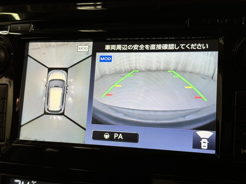 パノラミックビューモニターシステムが付いているので車の上から見た映像が確認できますよ。