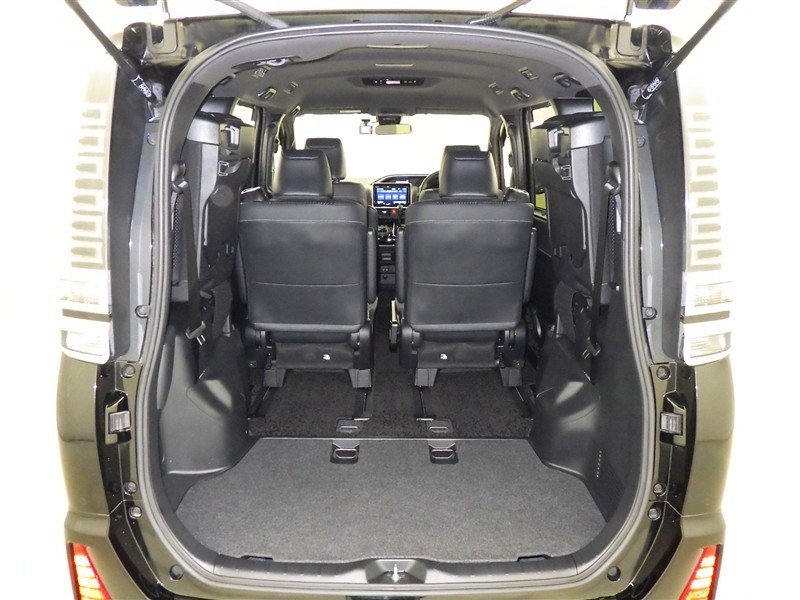 3列目シートは跳ね上げ式で折りたたみ可能です。キャンプ用品など大きな荷物もばっちり収納可能です!