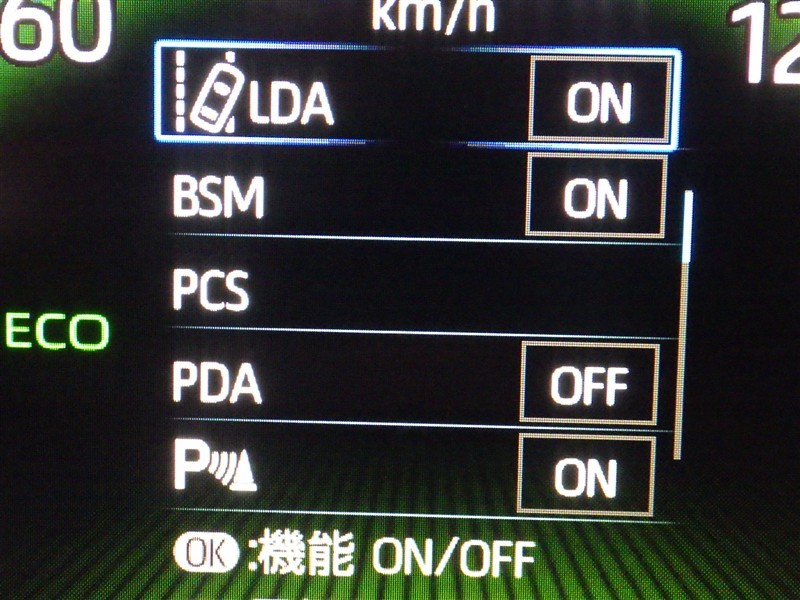 「レーンディパーチャーアラート」道路上の白線(黄線)をセンサーで認識し、車線を逸脱する可能性がある場合、注意喚起します