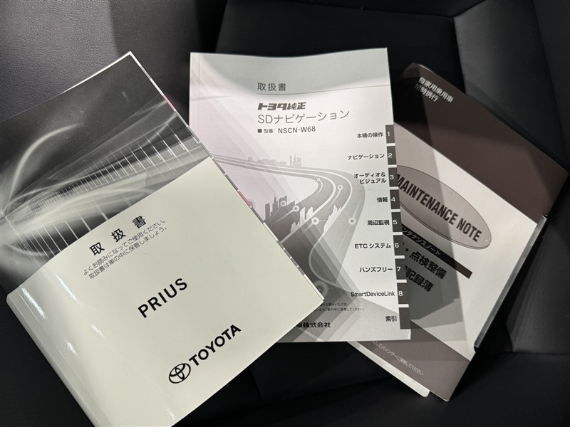 メンテナンスノート、取扱説明書です。 その車の整備記録が事細やかに記録されています。 車が生まれてから今までどのような道を歩んできたのか判るとても重要な物ですよ。